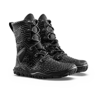The Jungle ESC is an expedition-grade barefoot boot built for jungle exploration. It dries and drains rapidly for moisture management, and features corrosion-resistant brass hardware. A gusseted tongue helps block hazardous flora and fauna, complemented by a high-vis fluro lining for easy detection. The Michelin sole is our wildest yet, with an oversized heel lug for emergency braking on slippery surfaces. The protective, bio-inspired overlay offers high durability, without compromising breathability or mobility. Laces supplied are long, allowing you to tuck them in, or wrap them around the cuff for extra protection from leeches. And everything is crafted with synthetic, vegan* materials, selected for their resistance to decomposition in hot, humid environments.